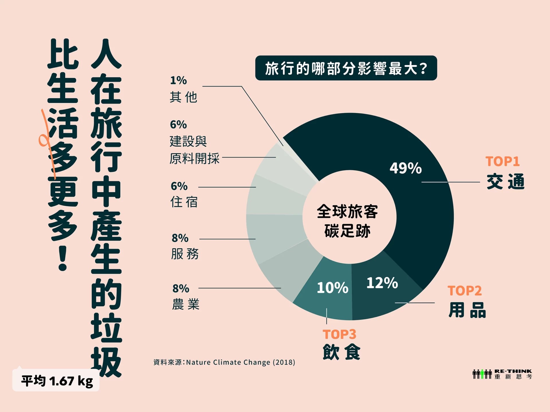 荷蘭一項研究指出,人在旅行中平均產生 1.67 公斤的垃圾,比平常生活多更多。