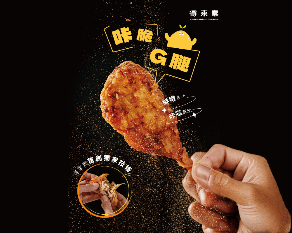 不同於坊間素食雞肉多有豆腥味,關登元拍胸脯保證得來素爆汁 G 腿的美味。爆汁的杏鮑菇模擬出超真實的雞肉手撕感,撒上特製胡椒,絕配!