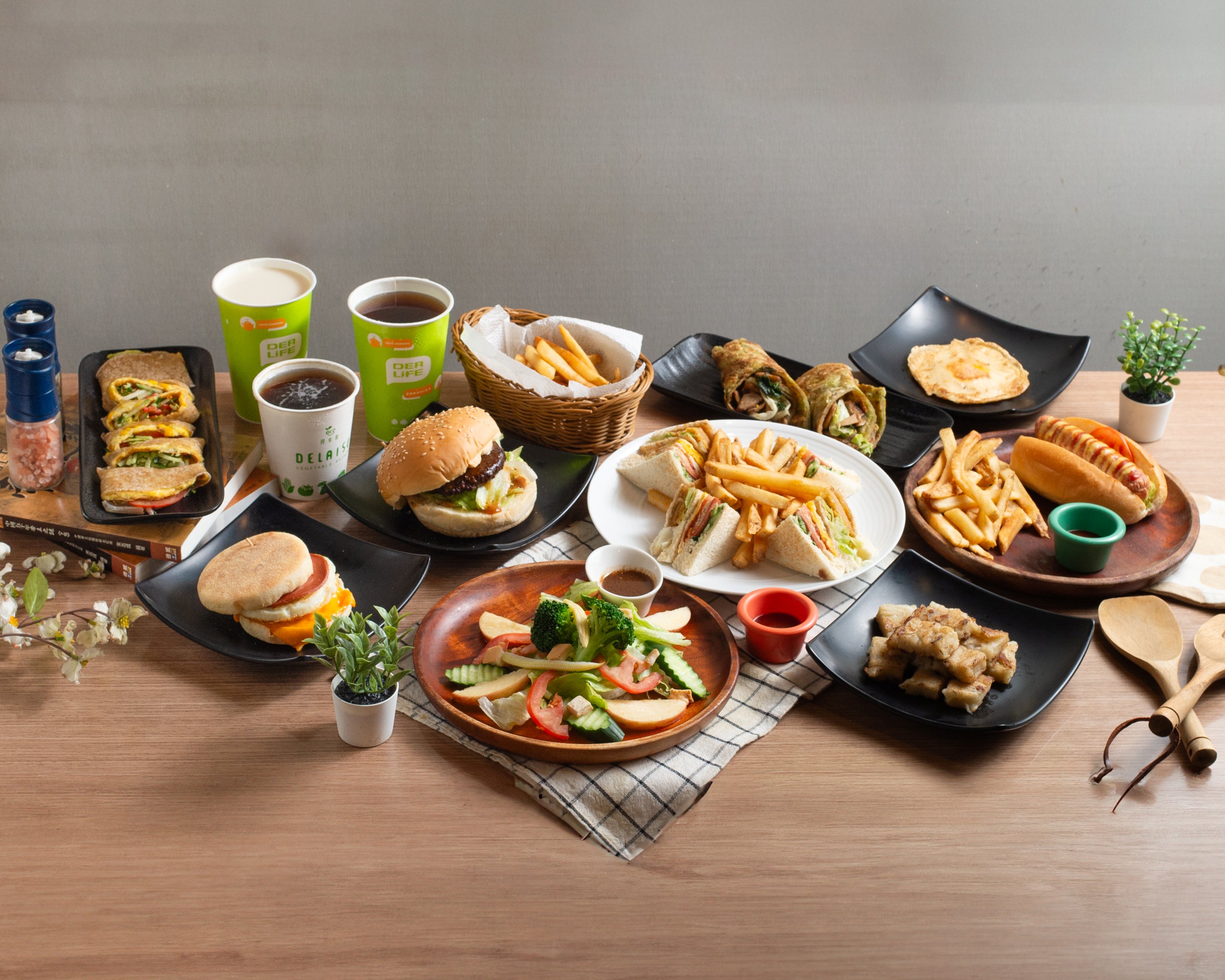 走進寬敞明亮的店面,這桌顧客正在享用美味的大熱狗、那桌顧客則正要開吃冒著煙的肉排鐵板麵,你相信嗎?這可是一家蔬食早午餐店!「得來素」創立於 2007 年,從小小攤車做起,目前,他們已是全台有 17 家分店的蔬食早午餐領導品牌。