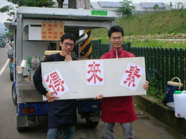 從職業軍人退伍後,他和國中同學陳昆宏決定一起創業。因為爸媽吃素,他發現市面上早餐店雖多,但素食者能吃的品項卻很少,若能補足這個缺口,創業應該有機會成功。不久後,兩人便在台中潭子慈濟醫院周邊開始了攤車生意。