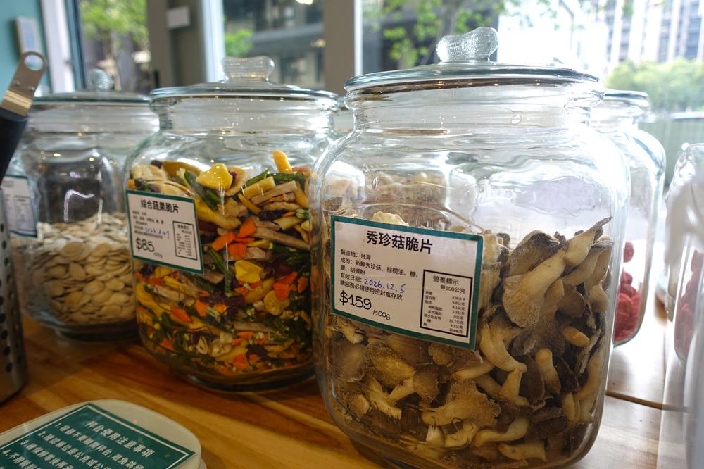 果乾也是店內人氣王!除了常見的草莓乾、芒果乾、鳳梨乾,你還可以嘗試少見的波斯椰棗、無花果等。單吃涮嘴,打入精力湯也別有風味。