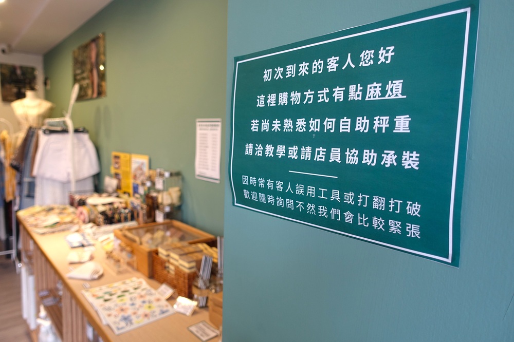 這讓她有了開「無包裝商店」的念頭,希望能為推廣環保意識盡一份心力,也讓有興趣的人可以輕鬆加入環保行列。上網針對北部無包裝商店做功課後,她發現有同性質的店家即便不在鬧區,還是能持續經營,讓她更覺得可以試試看。