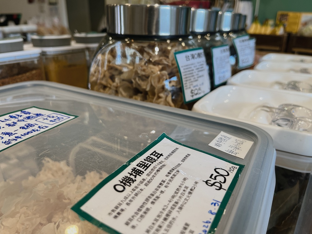 但堅持賣「台灣貨」,並不容易。例如剛開業時她想找台灣產的「川耳」,以為到迪化街繞一繞就能找到,沒想到那邊的川耳幾乎都是中國或越南產的,銀耳、枸杞等也是一樣的情況。她費盡心力到處問,終於找到能供應的在地農家。