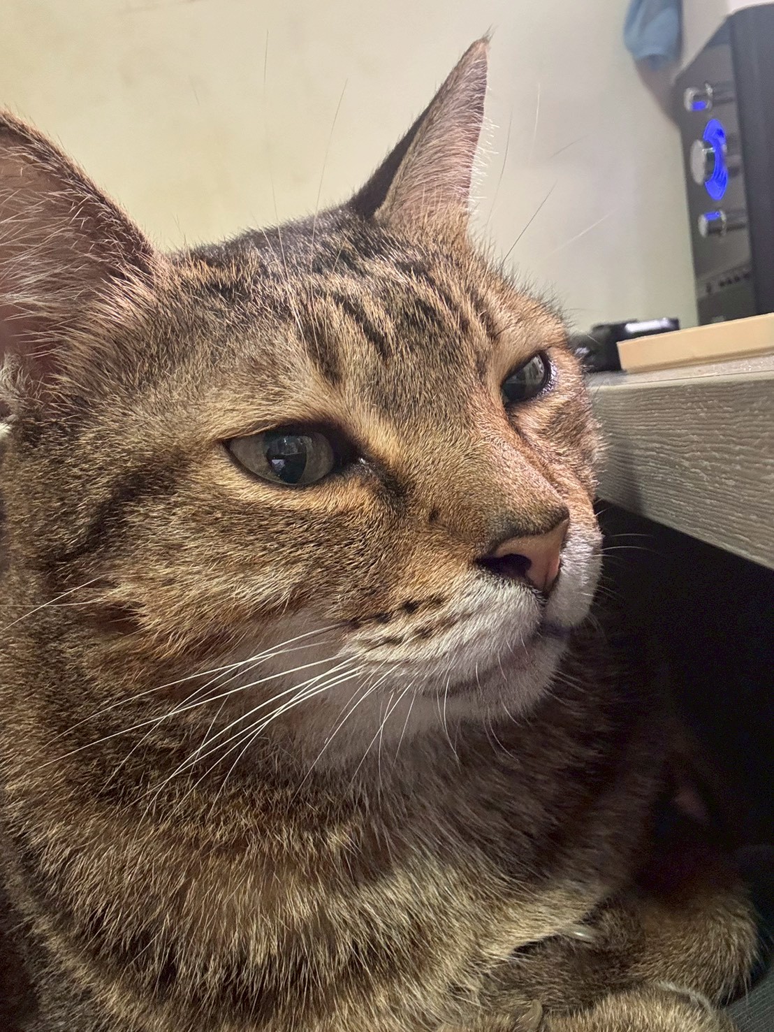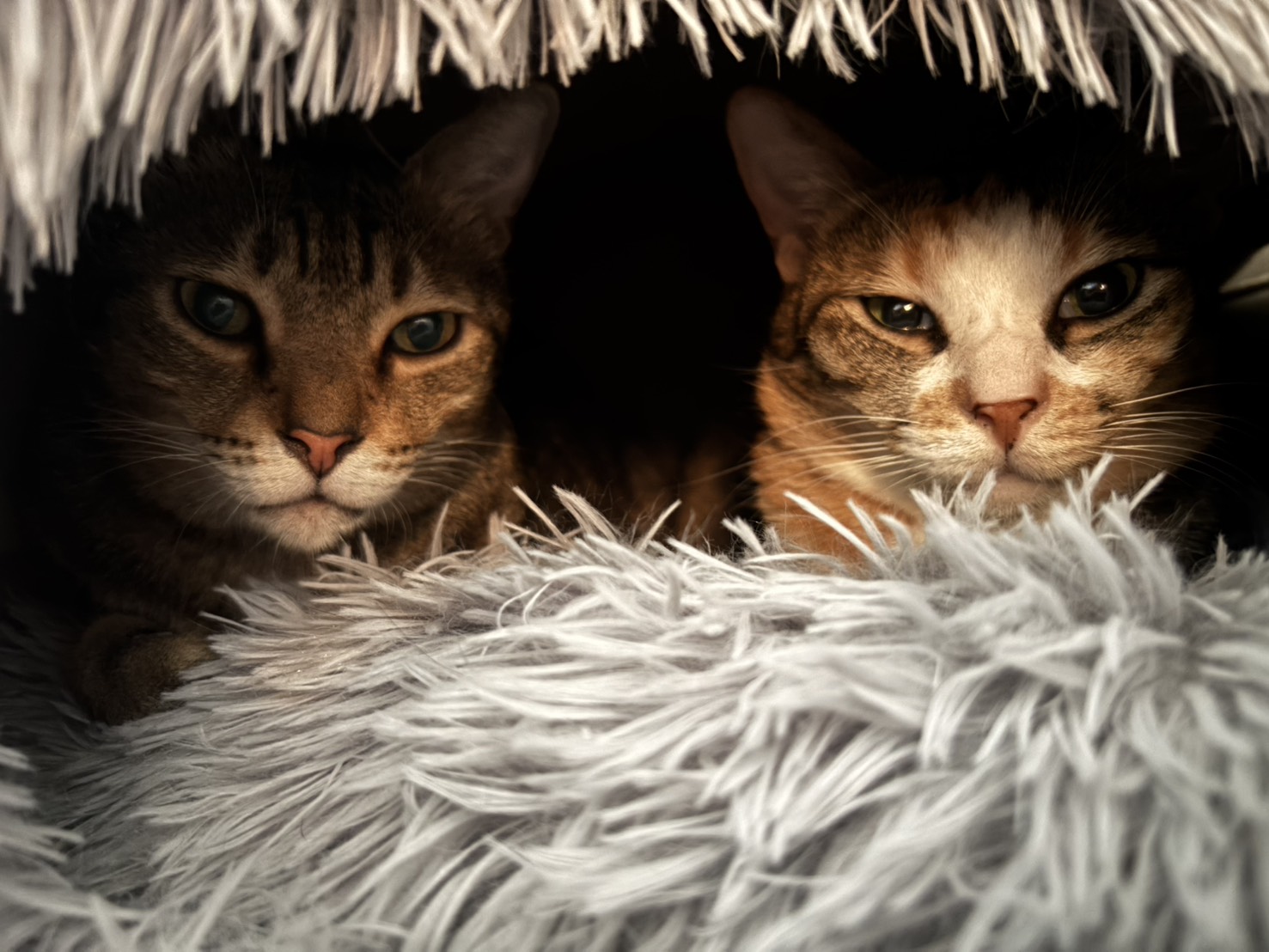 原本以為養到熟齡貓,應該會比較穩重,沒想到到了晚上還是會橫衝直撞,半夜時不時把我鬧醒,和三歲的貓沒什麼兩樣。我嘴上埋怨著「可以睡覺了嗎兩位」,心裡卻是開心的——這代表牠們雖然十歲了,依然精力充沛,在新家也適應得很好。